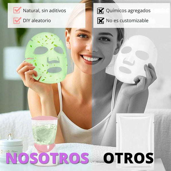 Ofrece mascarillas personalizadas con ingredientes naturales, operación simple y resultados visibles. Otros usan fórmulas industriales y menos control sobre la piel.