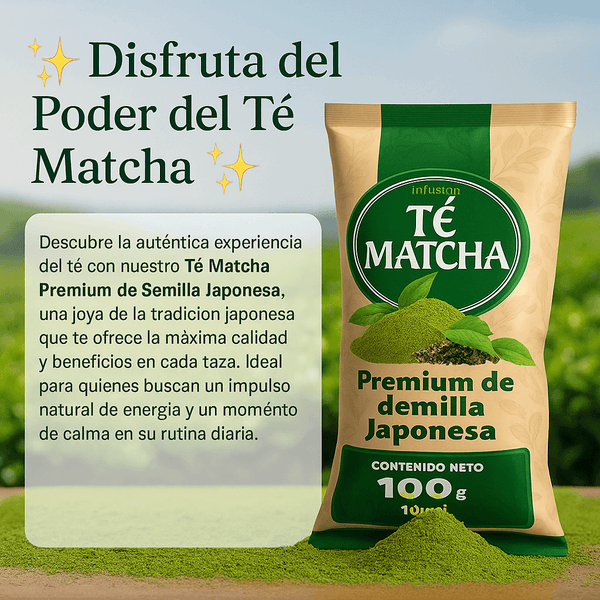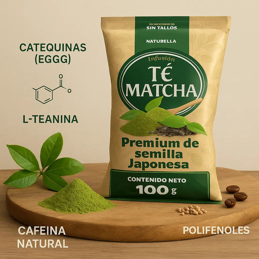 Contiene cafeína natural del matcha. Evita tomarlo muy tarde para prevenir insomnio si eres sensible.