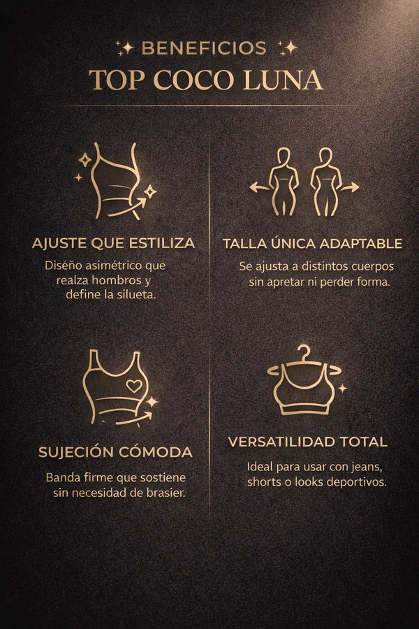No es un top común. Top Coco Luna combina diseño asimétrico, ajuste firme y una silueta que estiliza desde el primer uso, sin sacrificar comodidad.